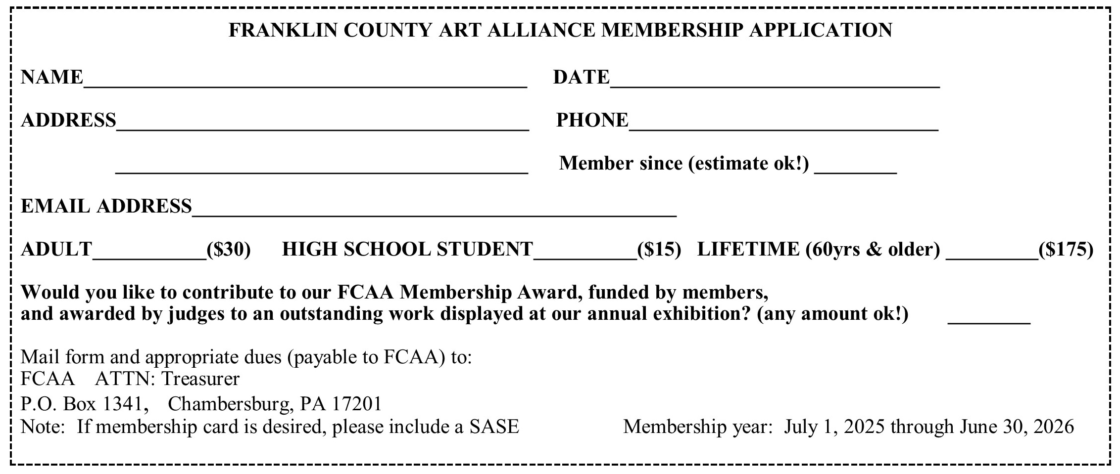 Franklin County Art Alliance PO Box 1341 Chambersburg, PA 17201 info@franklincountyartalliance.org